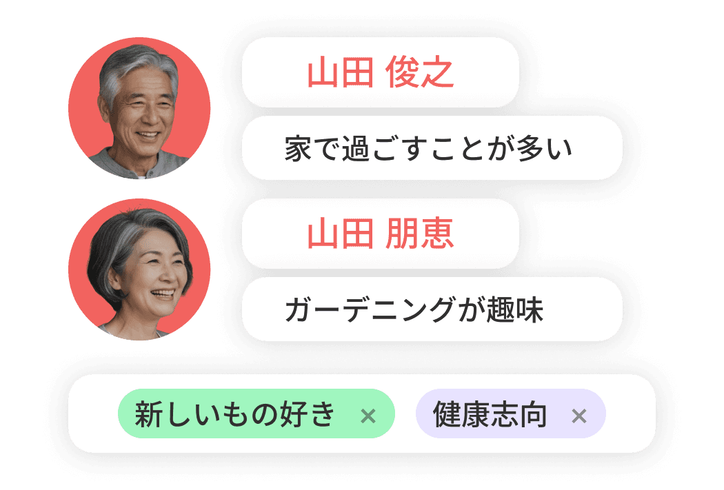 会話のきっかけになるちょっとユニークな日用品などから、ご家族の暮らしになじむ組み合わせを選びます。