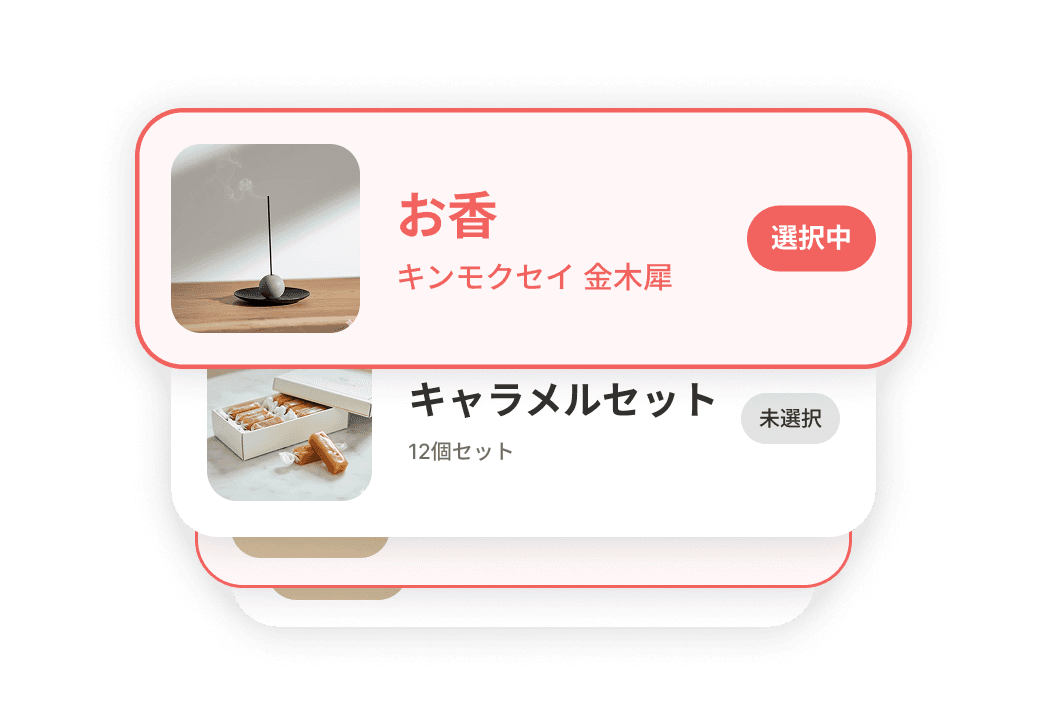 商品は自分も欲しくなるものも多く、プレゼントの選択肢の幅が広がっていくので使っていて楽しいです。