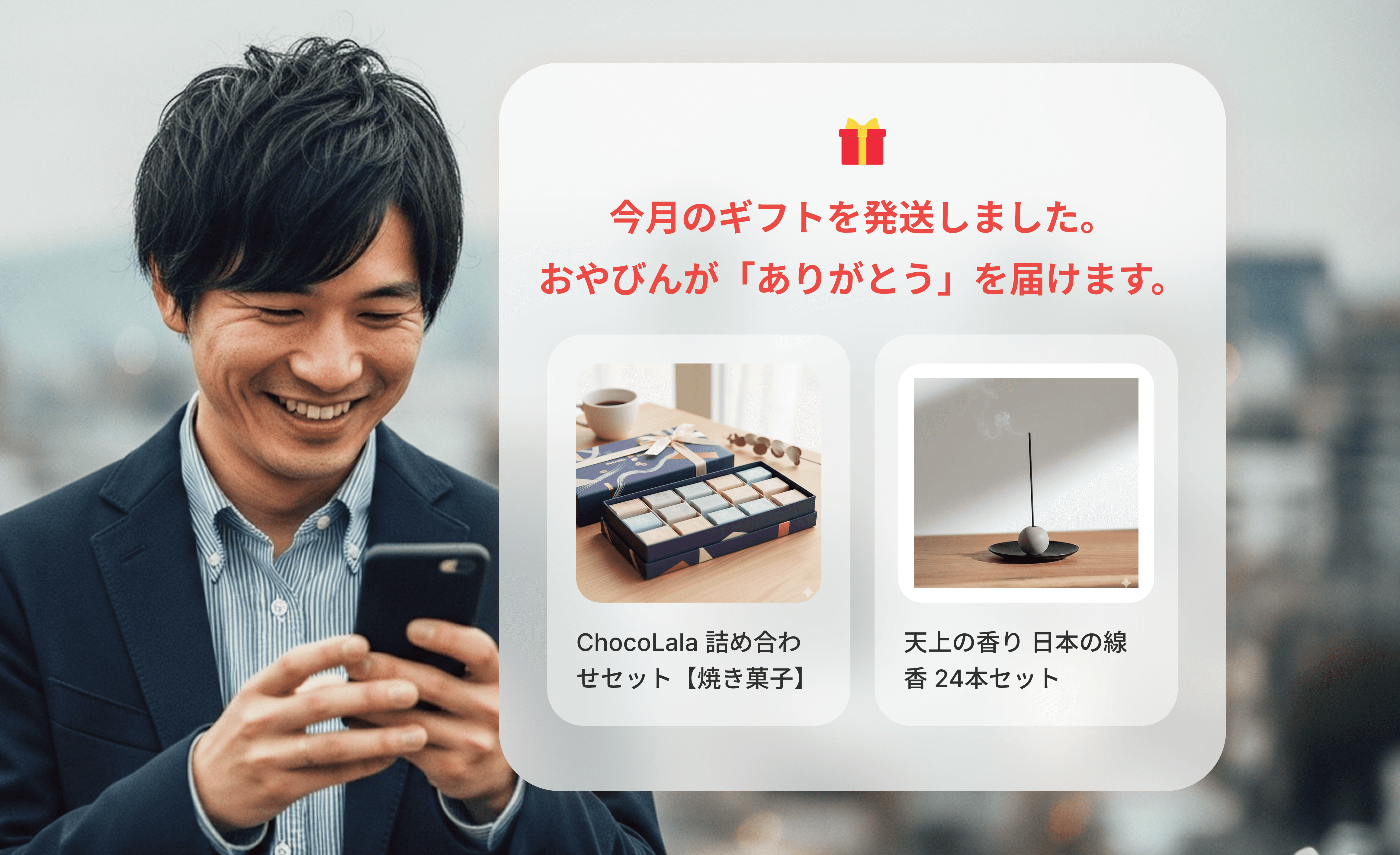 おやびんは、月に一回スマホで中身を選ぶだけなので、どんなに多忙でも必ず続けられています。